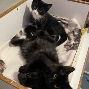 Omega and Rolex are looking for a home to call their own together as they are very bonded. Omega (black longhaired) is definitely in charge and will be first to say hello, Rolex (Tuxedo shorthaired) will wait for Omega to suss you out before approaching you. Both boys are happy, playful and confident around people and are ready for their next adventure, finding their forever home!