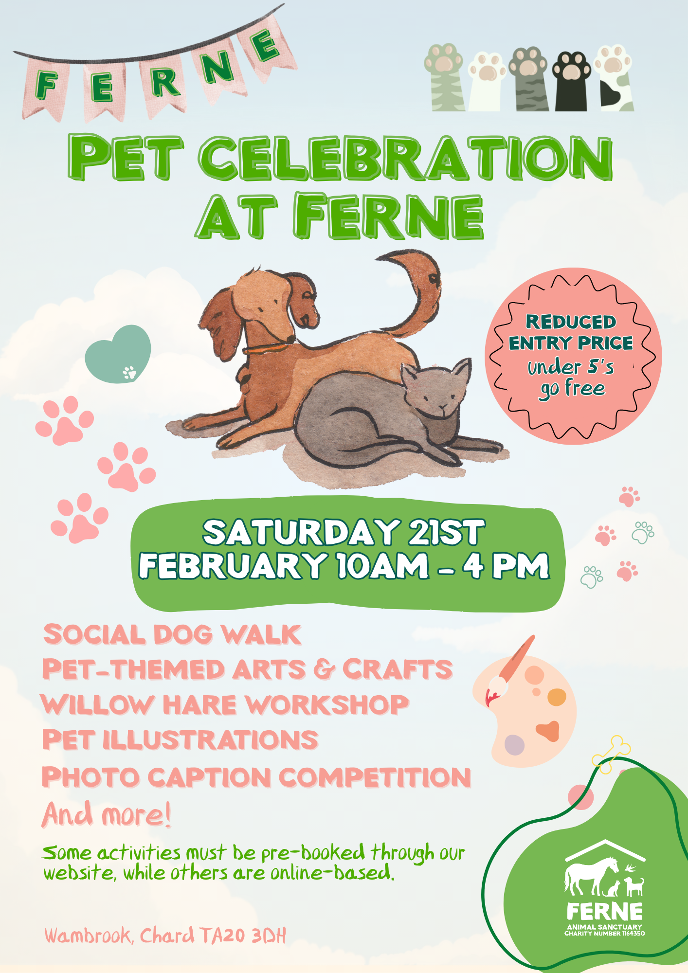 Ferne Social Dog Walk – A wonderful way to meet new people and to get out for a walk in the countryside, with or without your dog. The walk will begin from Ferne Animal Sanctuary to The Cotley Inn and back, approx. 4 miles. For more information and to book your place please visit our online shop here.