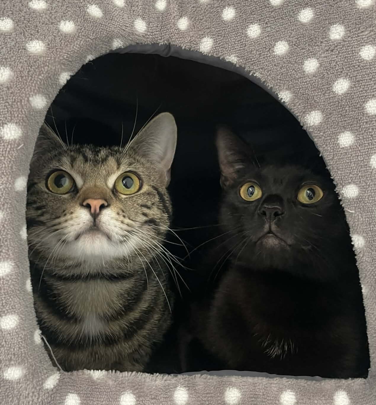 Mac and Cheese both really like human company so would like it if their new owners were at home a lot of the time. They are also used to living with children so could again and would happily adjust to living with another cat.