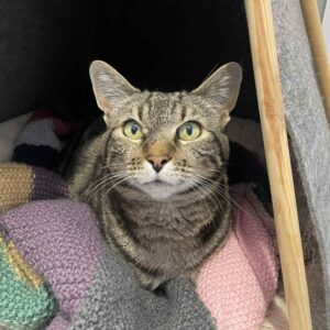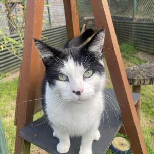 We believe that Casio was living outdoors before having her kittens but it’s clear she prefers the comforts of a home. Casio can be nervous around people and will need gently handling and lots of patience to allow her confidence to grow. Casio will also need at least one confident cat friend that she can look to for guidance.
