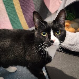 Chilli is chatty, affectionate and loves a lap. We have discovered she isn’t a fan of other cats, so a home without other felines is needed. She does however appear to be comfortable around dogs so could live with a cat savvy dog with gentle introductions.