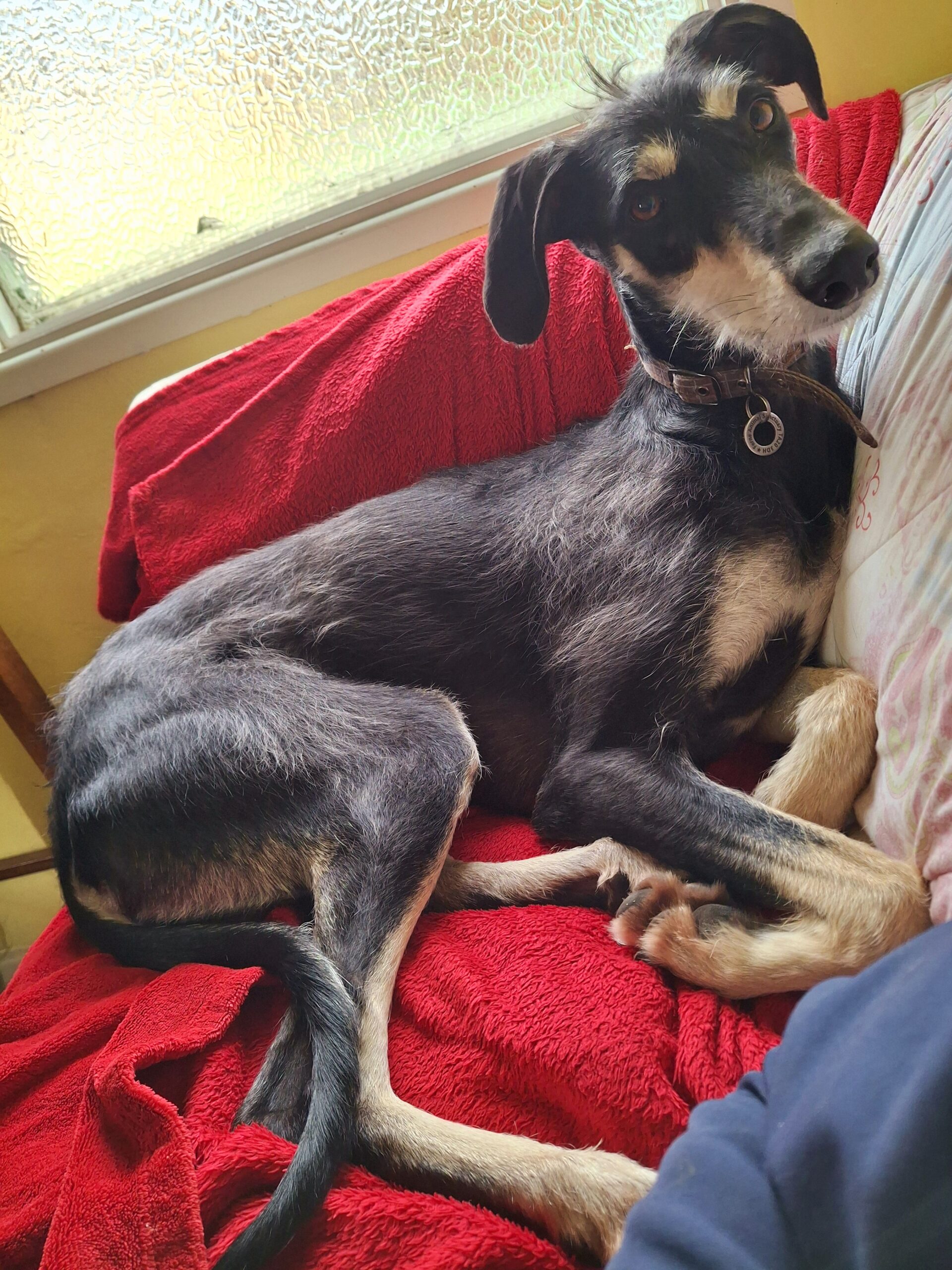 This handsome sighthound came to us as a welfare case after living in a car, so the world is still a pretty new and sometimes overwhelming place for him. Because of this, Shadow needs someone who will take things slowly, helping him build confidence through calm, positive experiences and continued training.