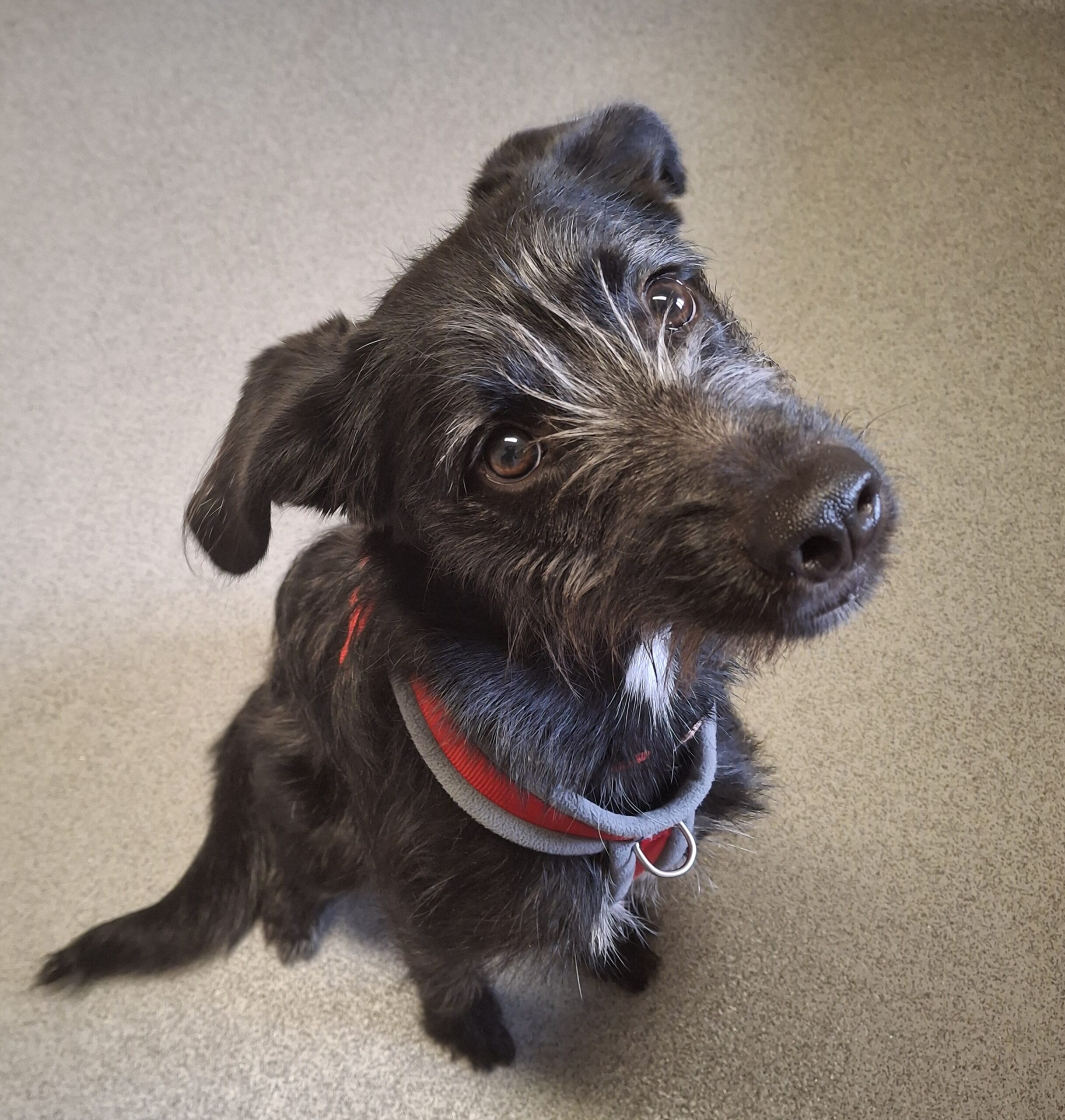 Delilah will chase cats, so she’s looking for a cat-free home. She can pull a bit on the lead and hasn’t been off lead before, so her new family will need to continue her training and help build her confidence.