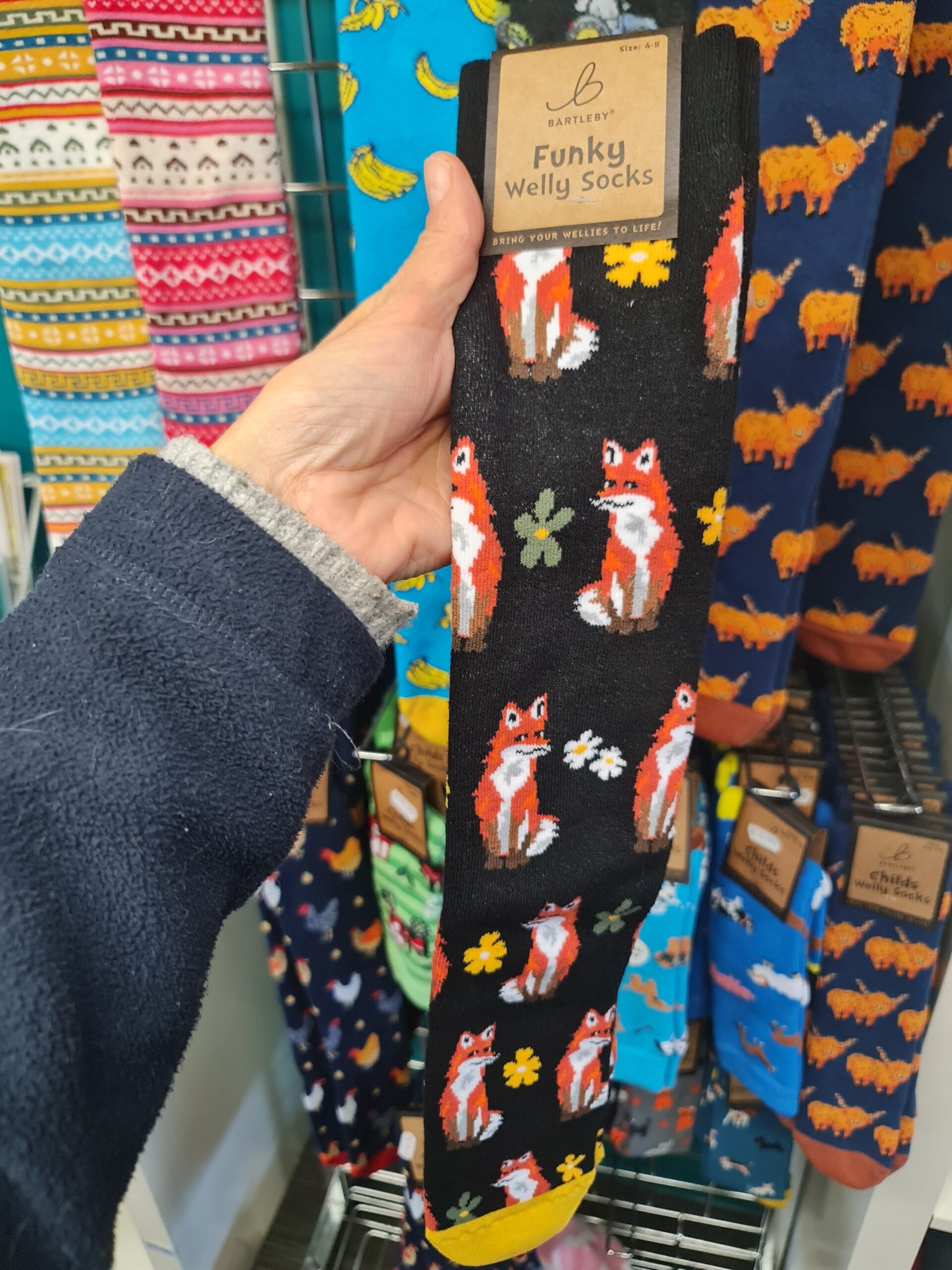 New design now in stock - these lovely fox welly socks. Perfect for wet winter walks.